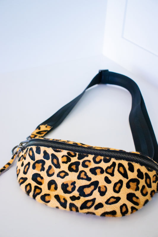 Leopard Print Hair on Hide Leather Crossbody |Belt Bag|